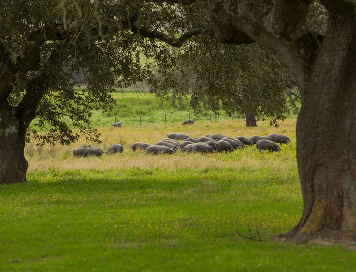 El cerdo ha sido criado durante toda su vida en la dehesa,