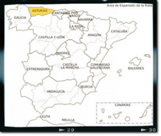 En su día, la raza se distribuía por toda la geografía asturiana. Después de haber atravesado un periodo verdaderamente crítico, la raza va recuperando de nuevo terreno y actualmente está presente en 60 de los 78 municipios que componen el Principado de Asturias.