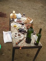 Se asaba en la lumbre la moraga, que son los primeros trozos de carne aliñada con ajo y pimienta molida, y se acompañaba con un buen vino de "pitarra", el vino joven de ese año.