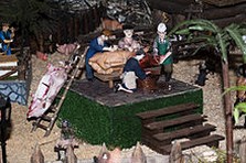 Representación de la matanza del cerdo en el Belén Animado de Quintanilla de Río Fresno.
