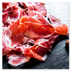 - Jamón ibérico (propio de dehesa de Salamanca), D.O. Teruel y gran reserva