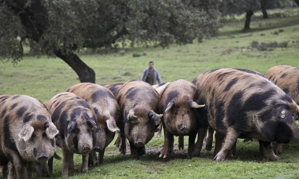 El cerdo ibérico ha estado históricamente unido al régimen extensivo, en el que aprovecha pastos, bellotas y otros recursos naturales del medio. La variedad Manchado de Jabugo se encuadra en este mismo sistema tradicional, íntimamente relacionado con la dehesa y con las prácticas ganaderas de manejo en libertad o semilibertad.